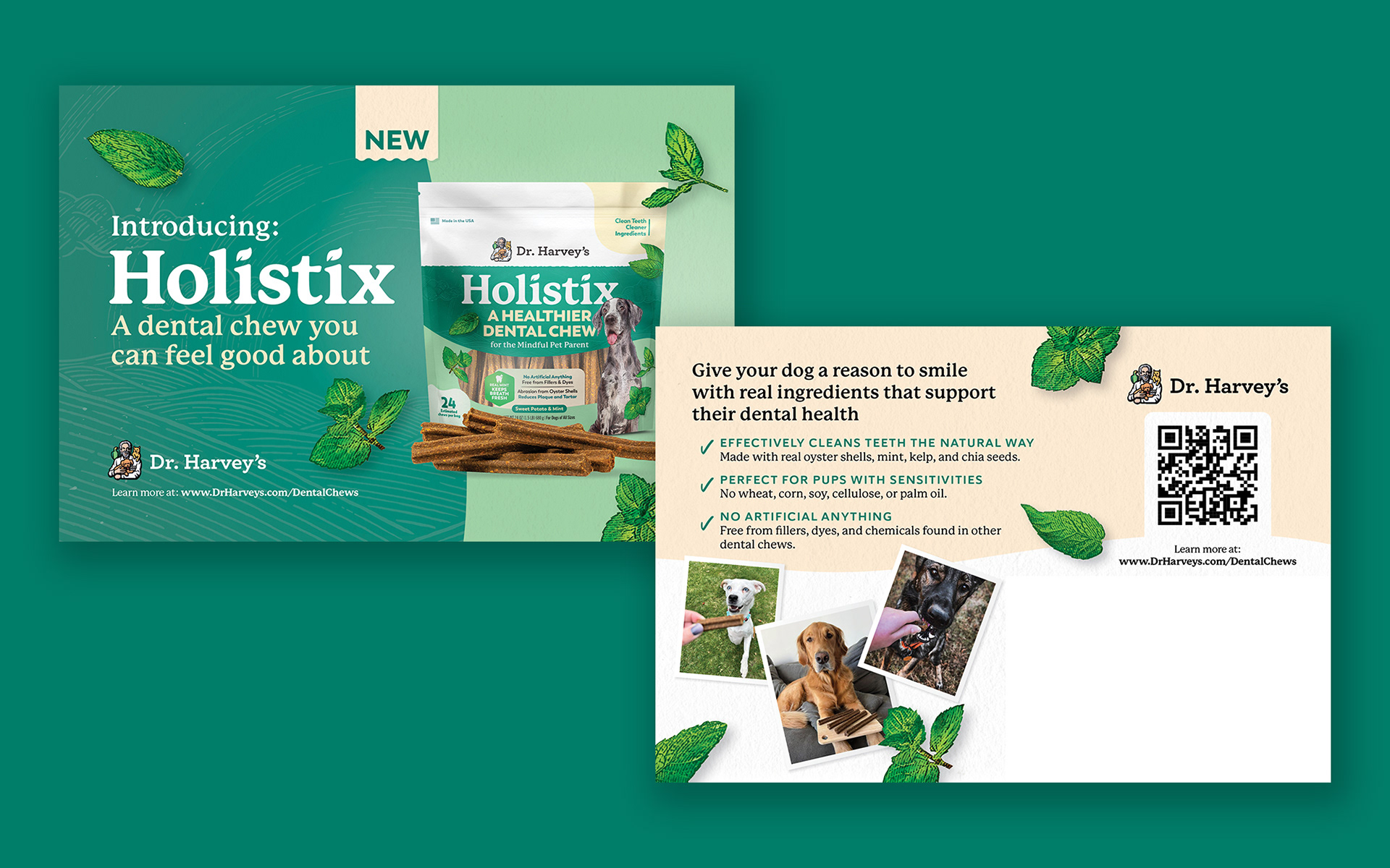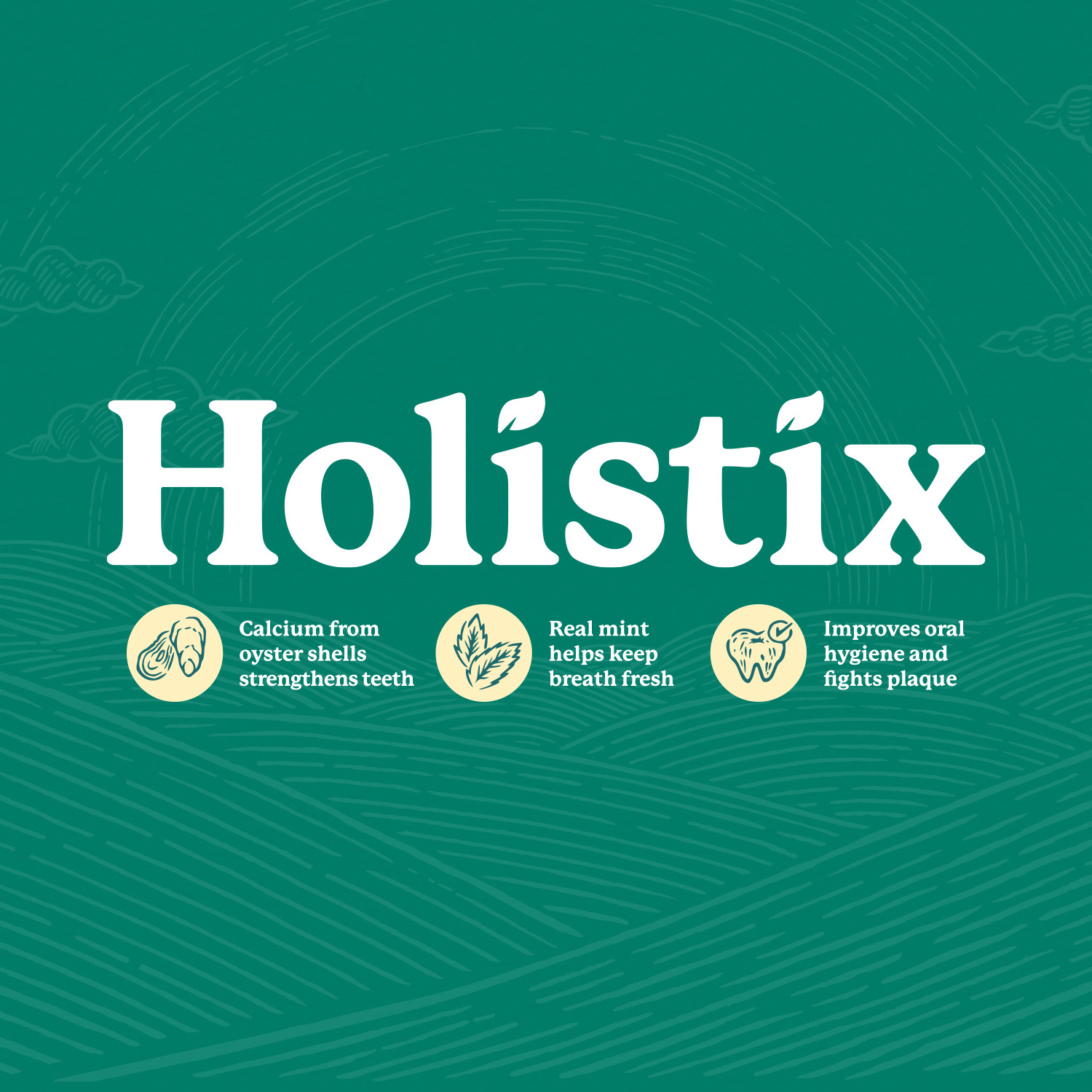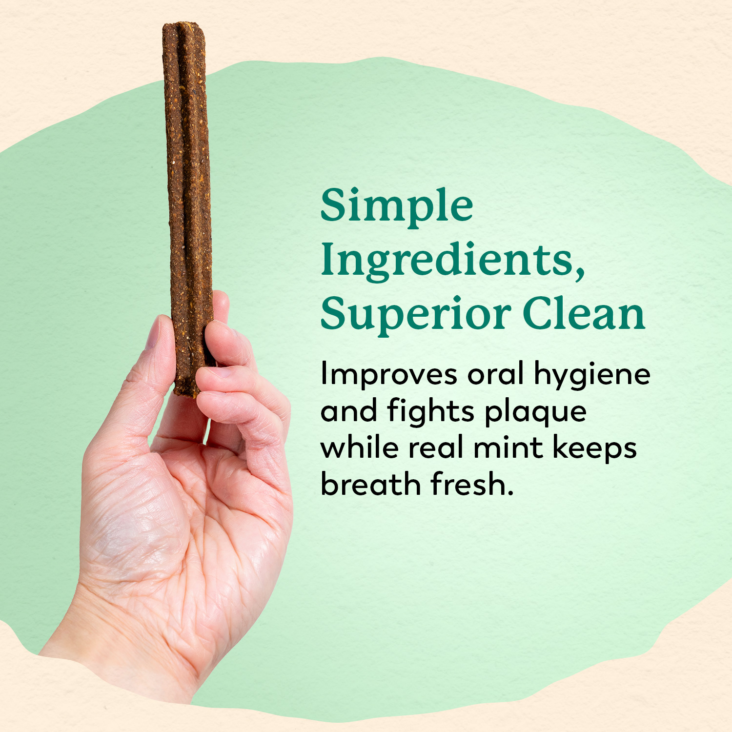 A holistic dental chew made for the mindful pet parent, supporting dental health the natural way with real ingredients and no artificial anything.