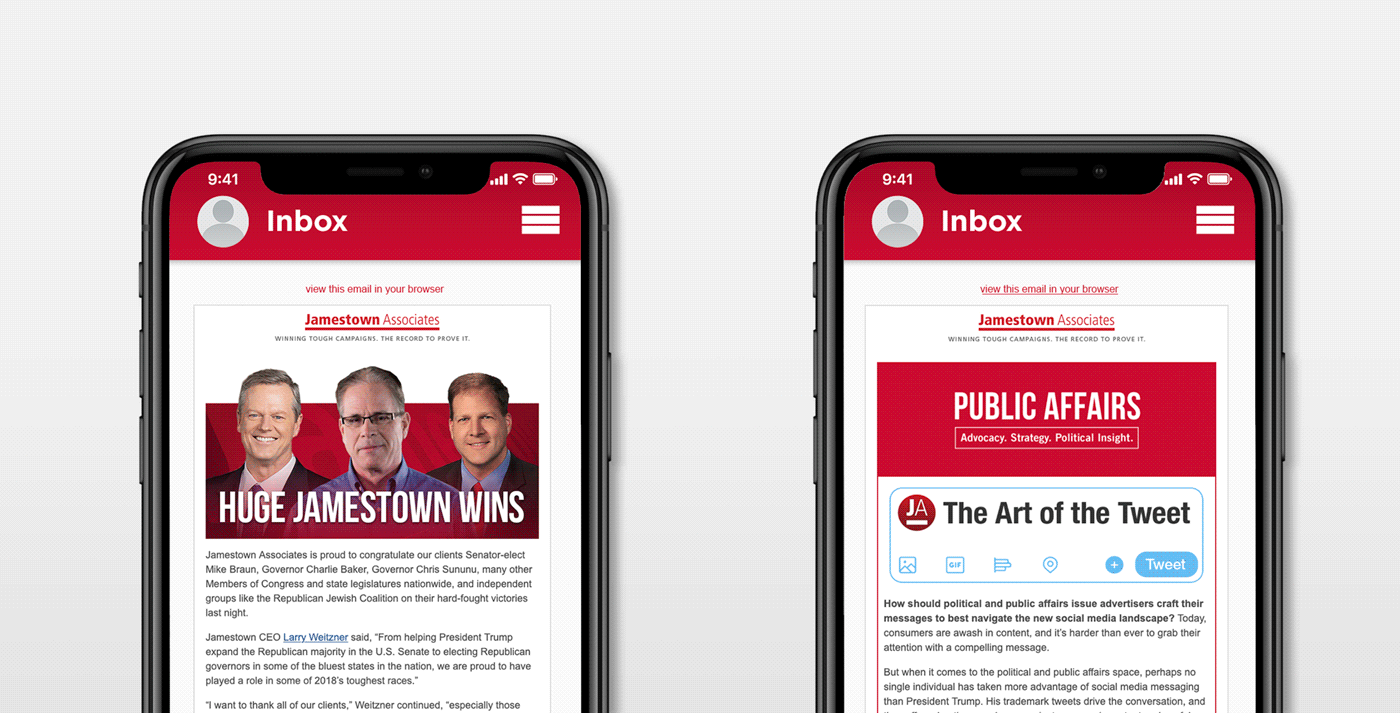 Digital branding and campaigns created for Jamestown Associates' email blasts and websites.
